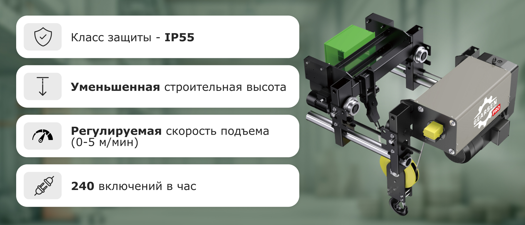 Серия GEARSEN PRO SH обеспечивает надежность, точность и безопасность в интенсивных производственных условиях, где стандартные тали не справляются. Инвестиции в профессиональное оборудование окупаются за счет высокой производительности, снижения простоев и увеличенного срока службы всех узлов.