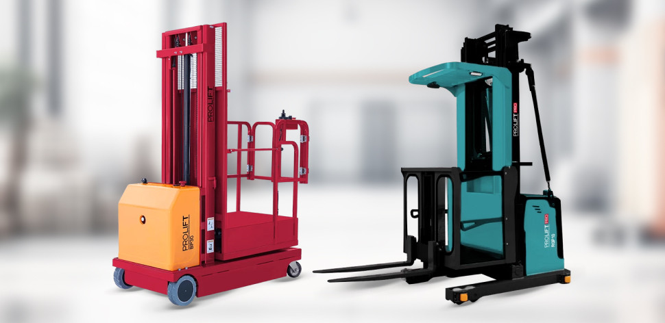 - Для отбора товаров с верхних ячеек стеллажей обязательно нужно использовать специализированную складскую технику — высокоуровневые сборщики заказов.