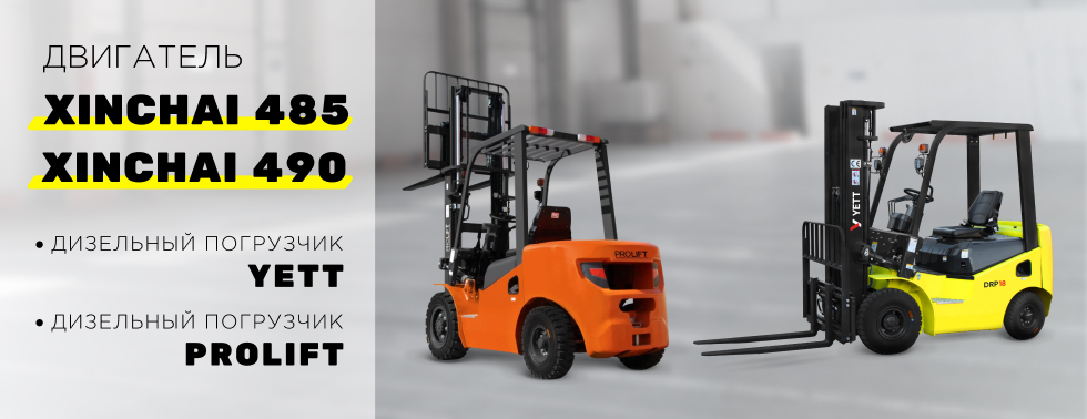 Дизельные двигатели Xinchai 490 (мощностью 35–50 л.с.) и Xinchai 485 (мощностью 30–40 л.с.) оптимально подходят для складской техники грузоподъемностью 1.5–3 тонны, где особенно важны компактные размеры, стабильная работа и низкий уровень вибрации, устанавливаются на некоторые модели вилочных погрузчиков YETT и PROLIFT.