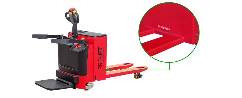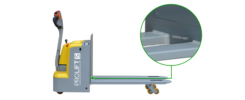 на боковой поверхности вил справа относительно оператора или на наклейке