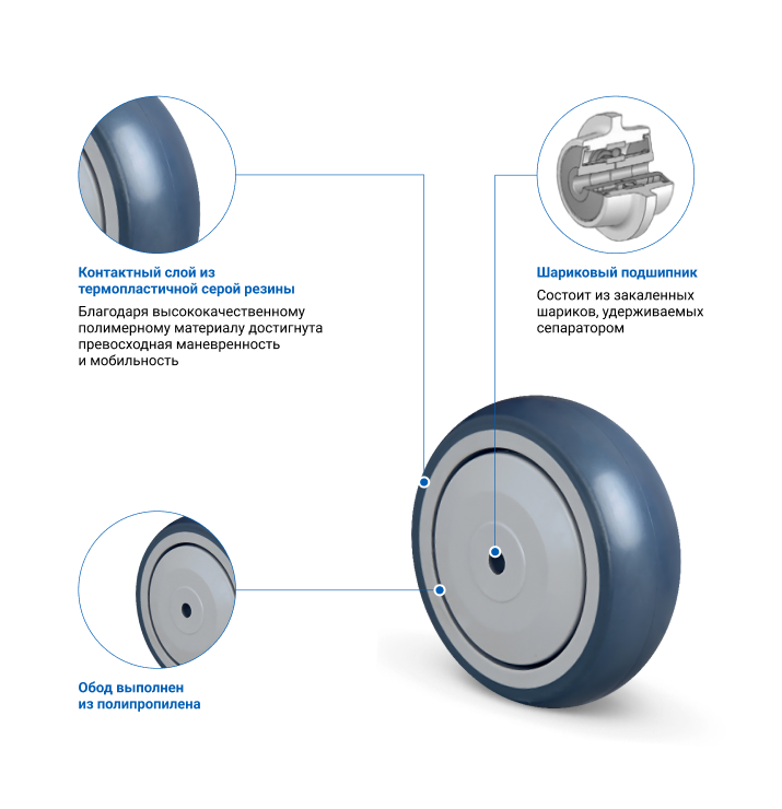 Аппаратное колесо без кронштейна с ободом из полипропилена и контактным слоем из термопластичной серой резины. Диаметр 125 мм, внутренней оси – 12 мм. Ширина ступицы 37 мм. Грузоподъёмность до 90 кг. Ширина обода 32 мм. Для защиты от попадания воды и пыли ступица защищена пластиковыми кожухами. Подходит для покупательских тележек, оснащения предприятий пищевой промышленности, медицинской мебели и оборудования.300+ человек