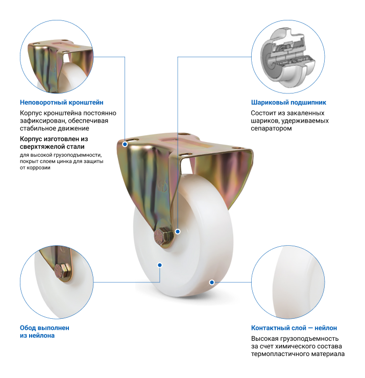 Большегрузное колесо из нейлона диаметром 150 мм. Для крепления предусмотрен неповоротный кронштейн с платформой размером 115x141 мм. Расстояние между центрами отверстий 80x105 мм. Литой обод имеет ширину 45 мм. Устойчивый к контакту с агрессивными химикатами и водой, хорошо поддается влажной обработке. Грузоподъемность 350 кг. Устанавливается в платформенные тележки, торговое и медицинское оборудование и мебель, технику.300+ человек