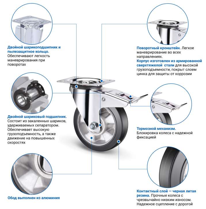 Колесо большегрузное обрезиненное RONEL SCDLb 80 HEAVY