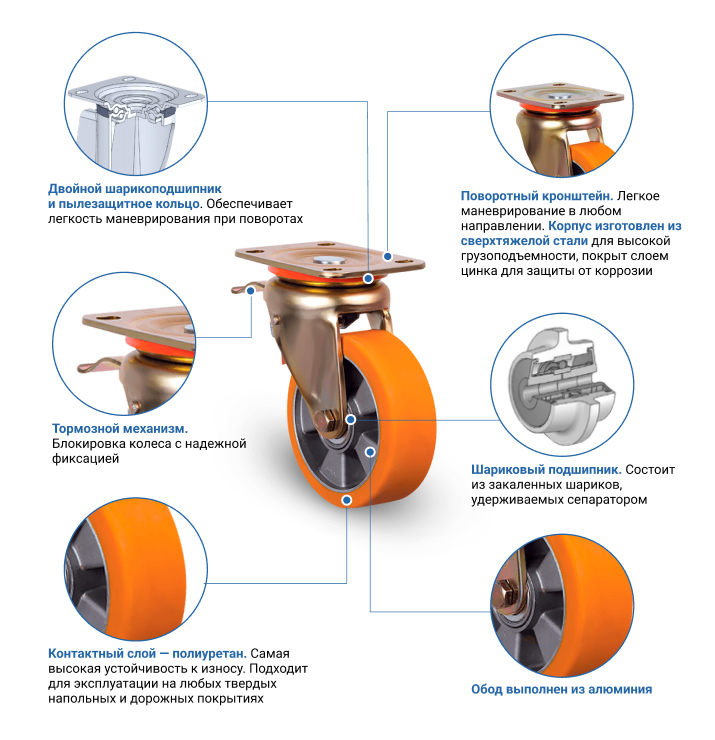 Большегрузное полиуретановое колесо ED01 ABP 100 F