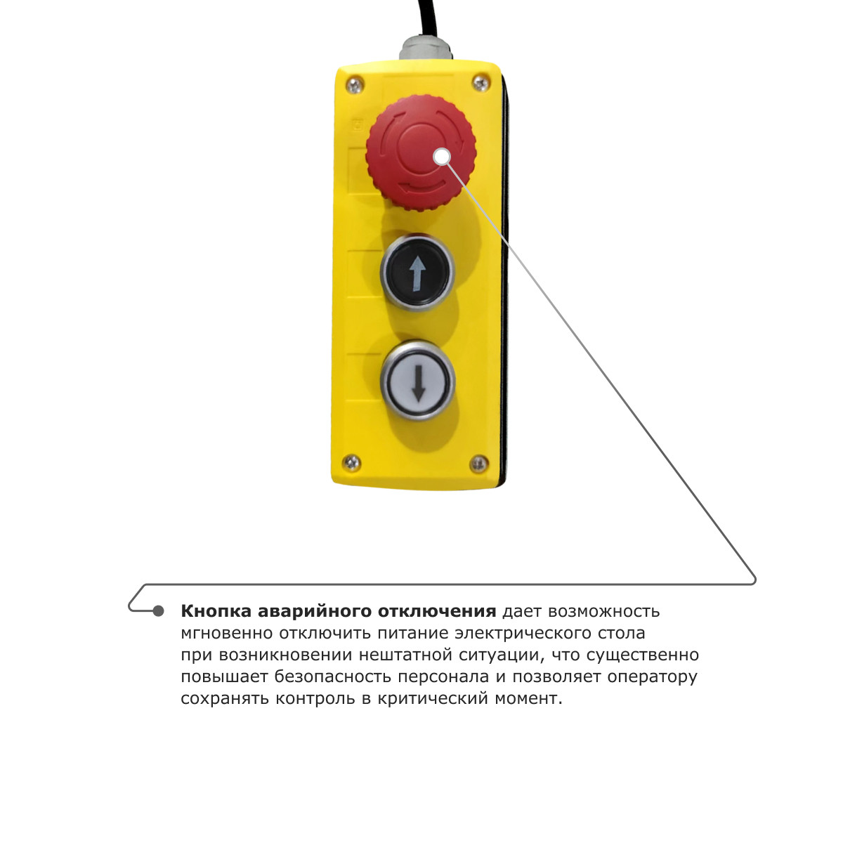 Стол PROLIFT M2 HIW 4.0EU M2 служит для подъема грузов, обладает компактными размерами и относительно небольшим весом. Конструкция стола стационарная. Основные конструктивные элементы: опорная рама, ножничный подъемный механизм, рабочая платформа. Ножничный механизм задействуется электрогидравлическим приводом. В гидравлическую систему входит цилиндр высокого давления с двойной функцией безопасности, хромированные поршни. Мощность электродвигателя 750 Вт. Управление осуществляется с проводного пульта, на котором расположены кнопки подъема, спуска и экстренного отключения. Длина кабеля, подсоединенного к пульту 3 м. Величина грузоподъемности составляет 2000 кг. Высота подъема платформы – 1040 мм. Область применения: авторемонтные мастерские, СТО, транспортные терминалы, склады, производственные объекты.