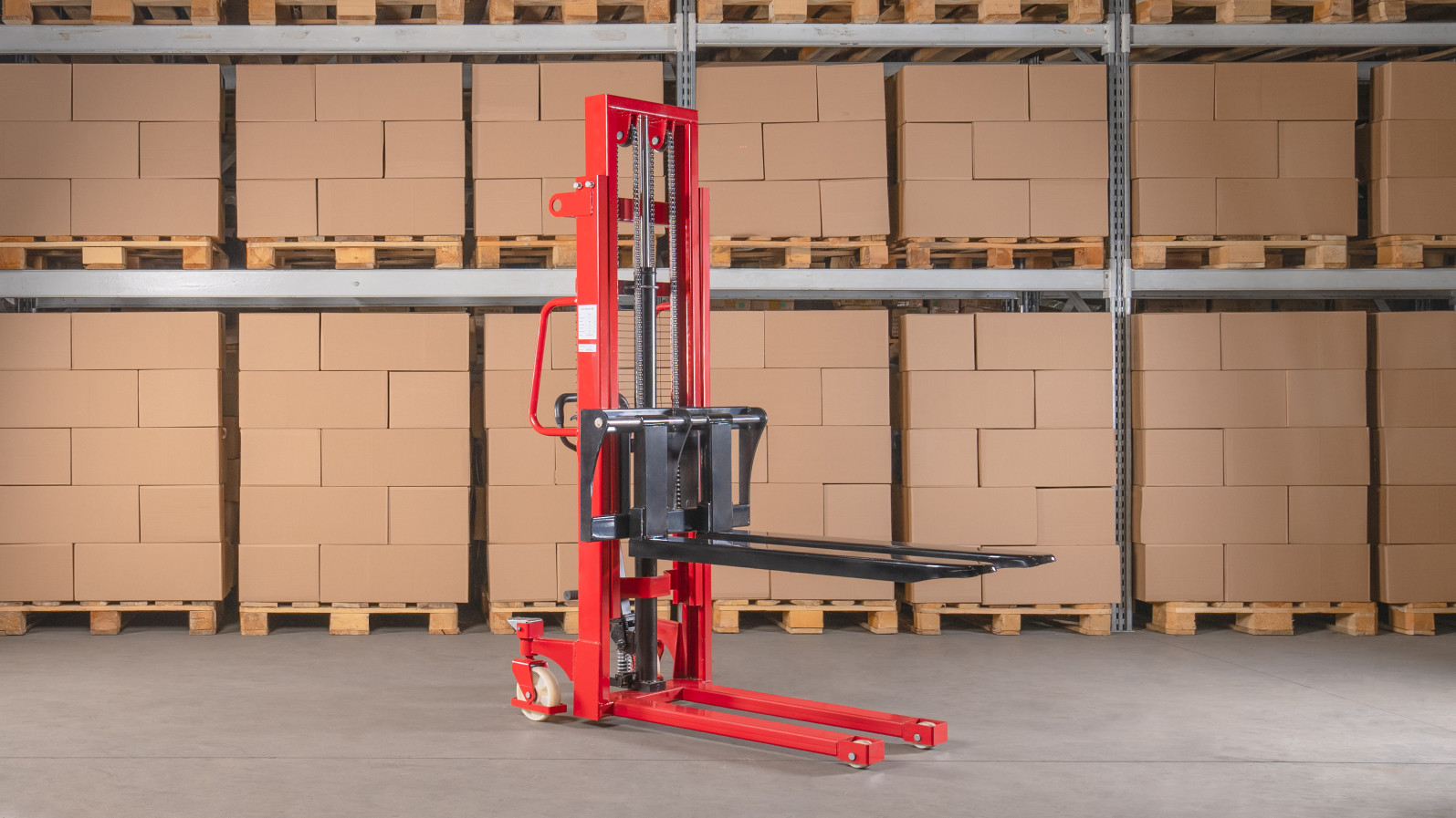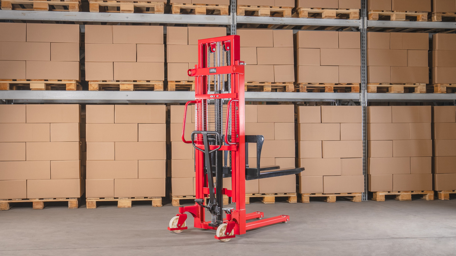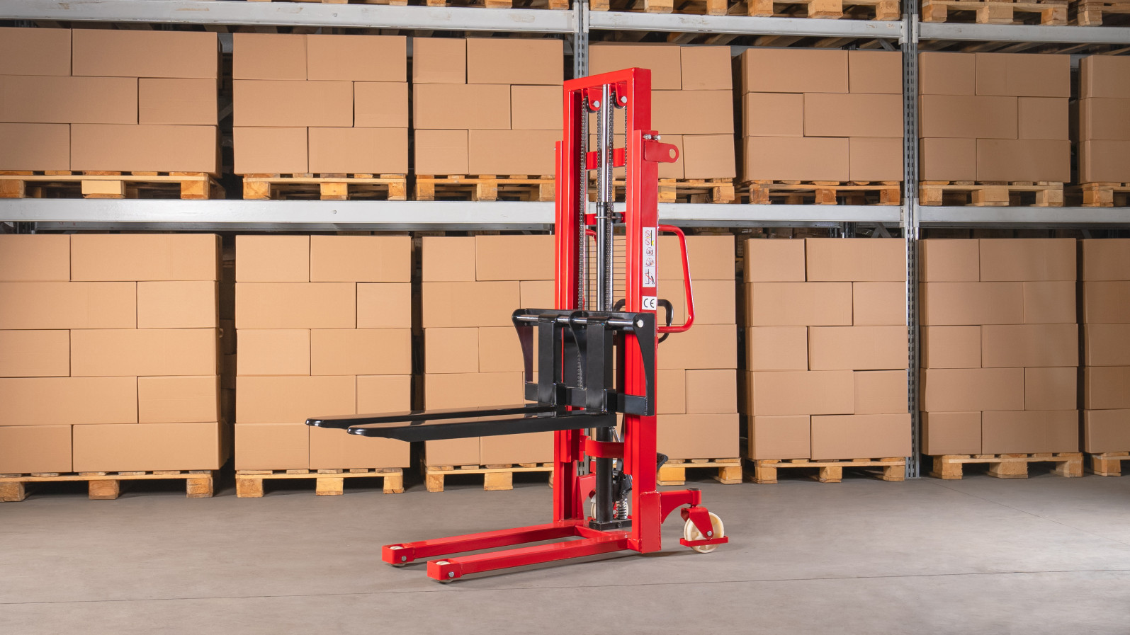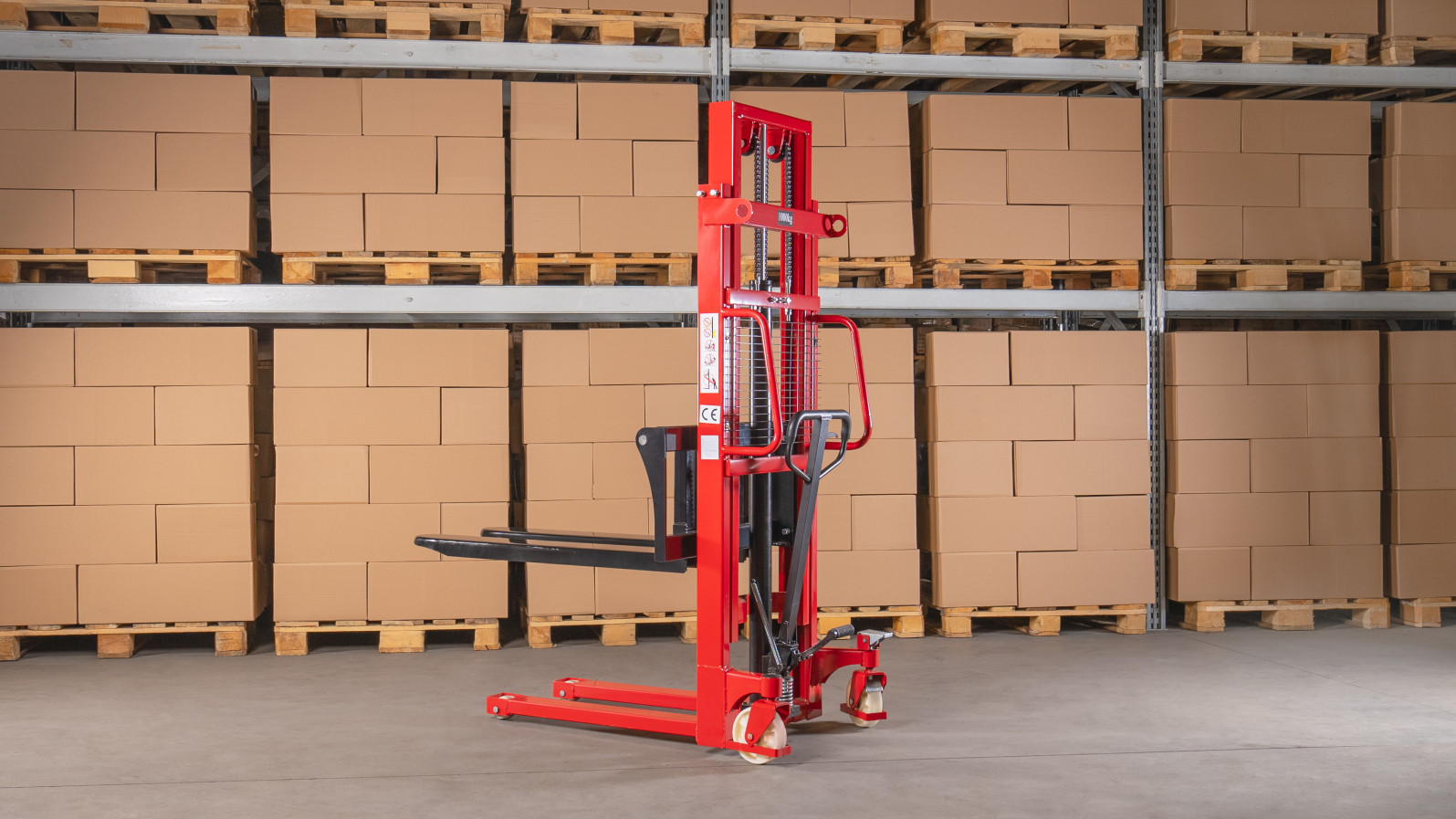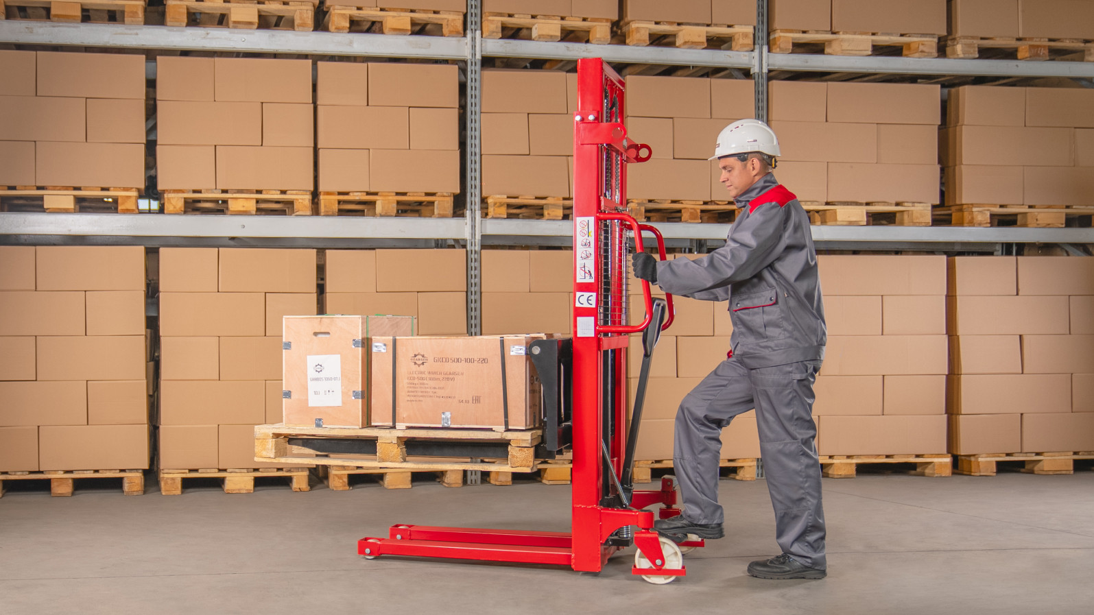 Ручной гидравлический штабелер rdf-1025 предназначен для подъема и укладки палетированных грузов массой до 1000 кг на высоту до 2.5 м. Чтобы поднять поддон на нужный уровень, рабочий нажимает на прорезиненную рукоять или педаль штабелера. За спуск отвечает расположенный на рукоятке курок, а также ножная педаль.