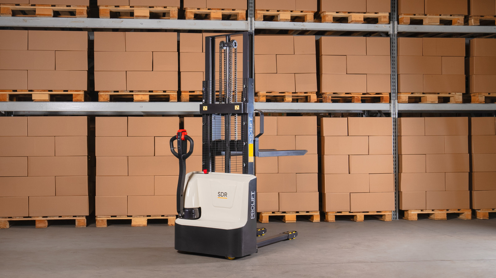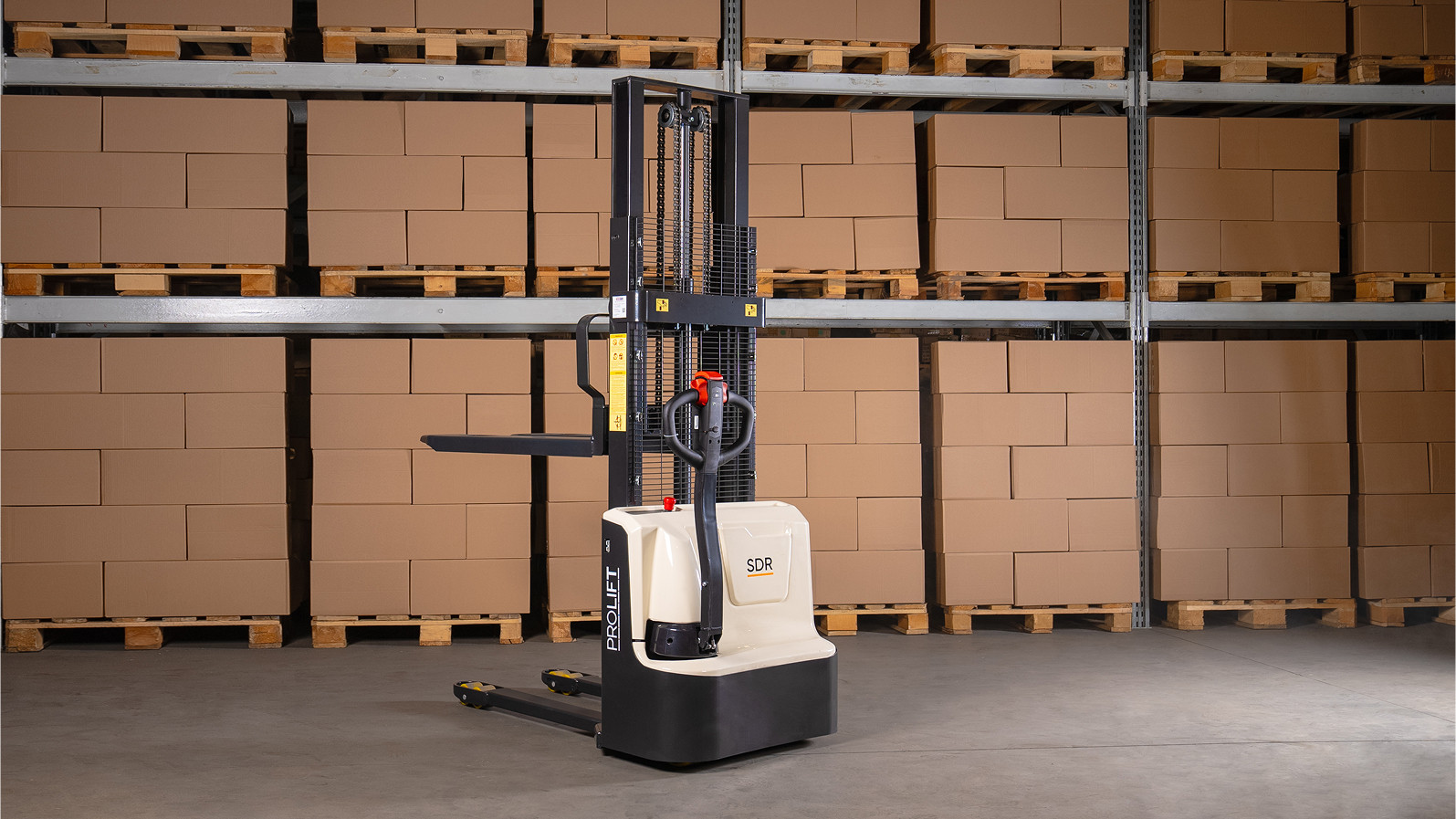 Самоходный электроштабелер PROLIFT M2 SDR 1225 li-ion рекомендуется для работы в зонах хранения с высокими стеллажами. Отличается малым весом, компактностью, небольшим радиусом разворота; значительно ускоряет и облегчает работу оператора. Максимальная высота подъема вил в модели составляет 2.5 м, номинальная грузоподъемность — 1200 кг.