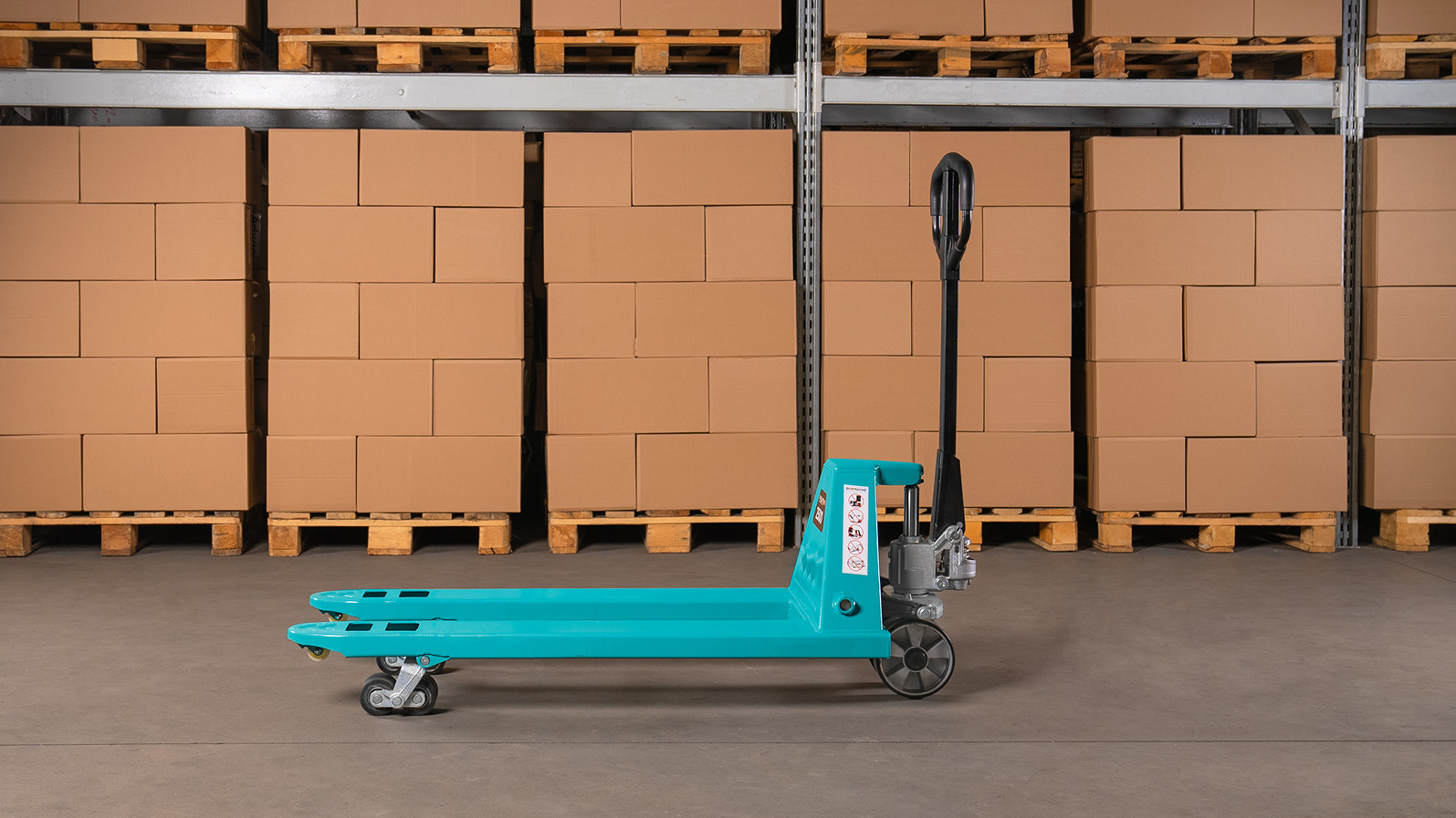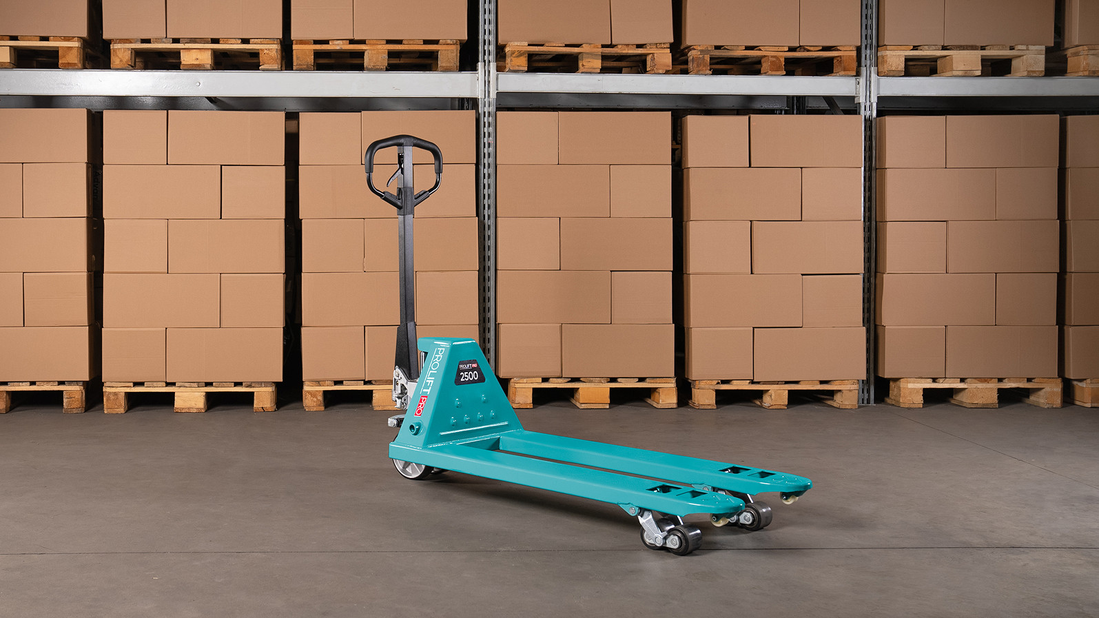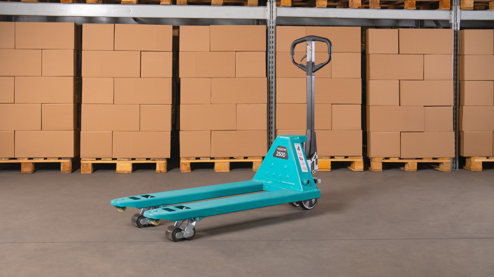 Маневренность и проходимость тележки увеличивает подкатной ролик. Многофункциональная прорезиненная рукоятка обеспечивает удобство и простоту управления. Усиление конструкции вдоль всей вилы и силовой профиль на корпусе продлевают срок эксплуатации тележки. Грузоподъемность модели — 2500 кг.