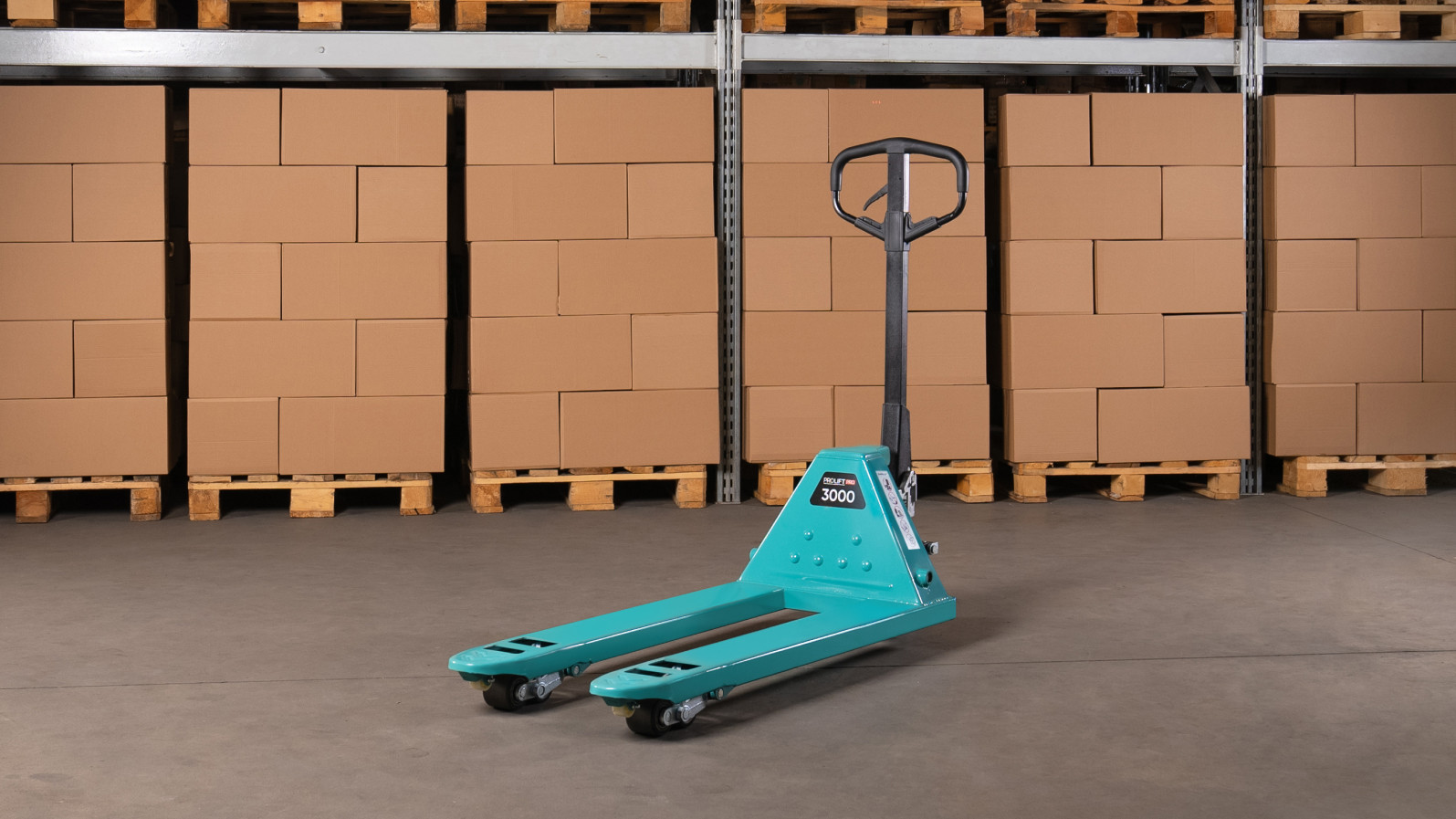 Маневренность и проходимость тележки увеличивает подкатной ролик. Многофункциональная прорезиненная рукоятка обеспечивает удобство и простоту управления. Усиление конструкции вдоль всей вилы и силовой профиль на корпусе продлевают срок эксплуатации тележки. Грузоподъемность модели — 3000 кг.