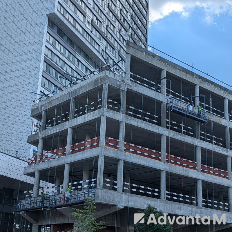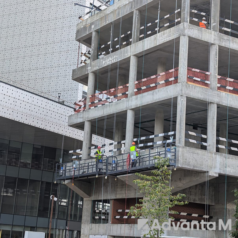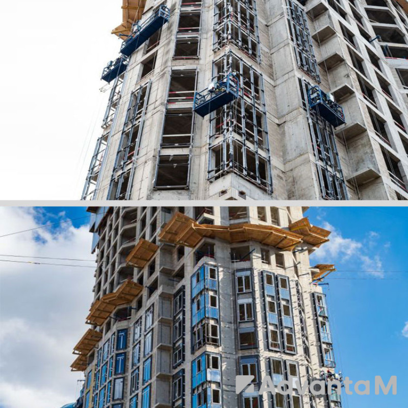 В сравнении с приставными строительными лесами, подъёмник ZLP для фасадных работ легче и быстрее устанавливается, не заслоняет здание, не требует крепления к стенам, отличается большей безопасностью.